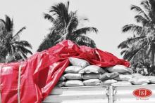 All cargo is secured and covered with tarpaulin to protect the cargo from the elements.